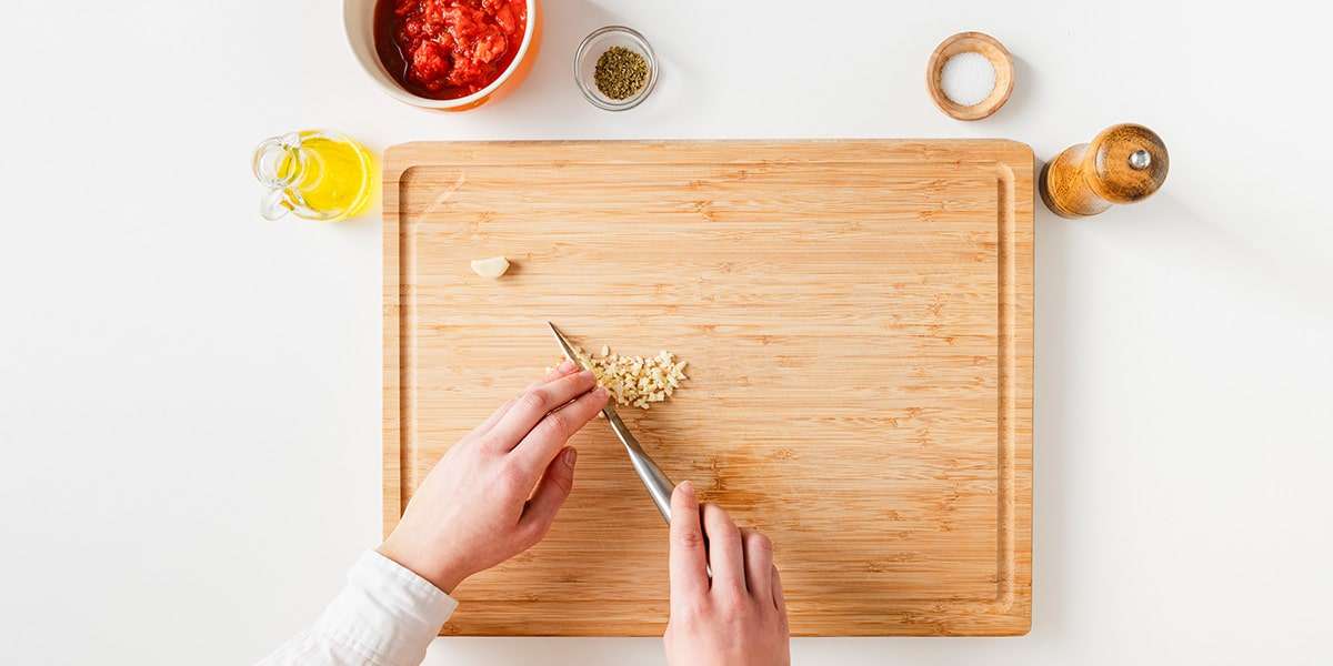 Knoblauchzehe(n) fein hacken.
